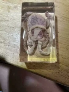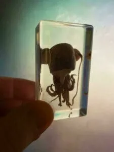 As with all specimens in lucite, size, color, and positioning of squid within the resin can vary slightly. Real Squid in resin Measures approx. 2 3/4 inches tall by 1 1/2 inches wide.