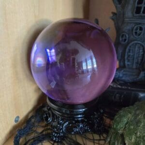 We take pride in having the highest quality, optically pure crystal and gazing balls available. This Large Purple Crystal Ball has been hand polished to a perfectly smooth sphere. Size is 110mm (a little over 4.3 inches in diameter) and comes with your choice of a free clear lucite stand or a lovely black ornate stand as seen in photos. Black stand measures approximately 3 inches in diameter by 2 inches tall. This is a processed item, made of quartz and glass mixture. This is the only way to obtain this level of clarity and flawlessness.