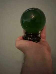 This emerald green crystal ball is beautiful to look at. It arrived in a sturdy well insulated box and earlier than expected. If you collect crystal balls this would be one for your collection for sure.
