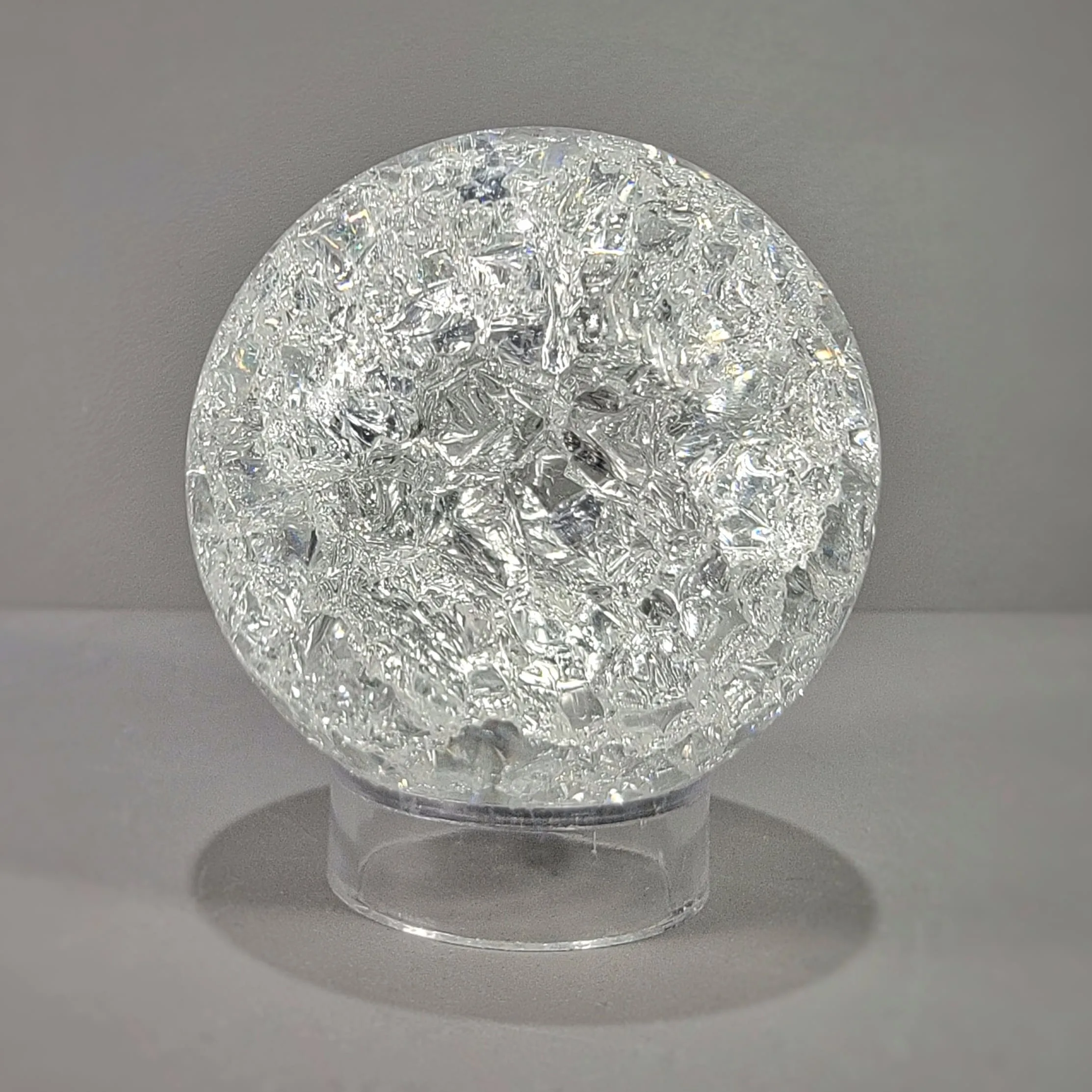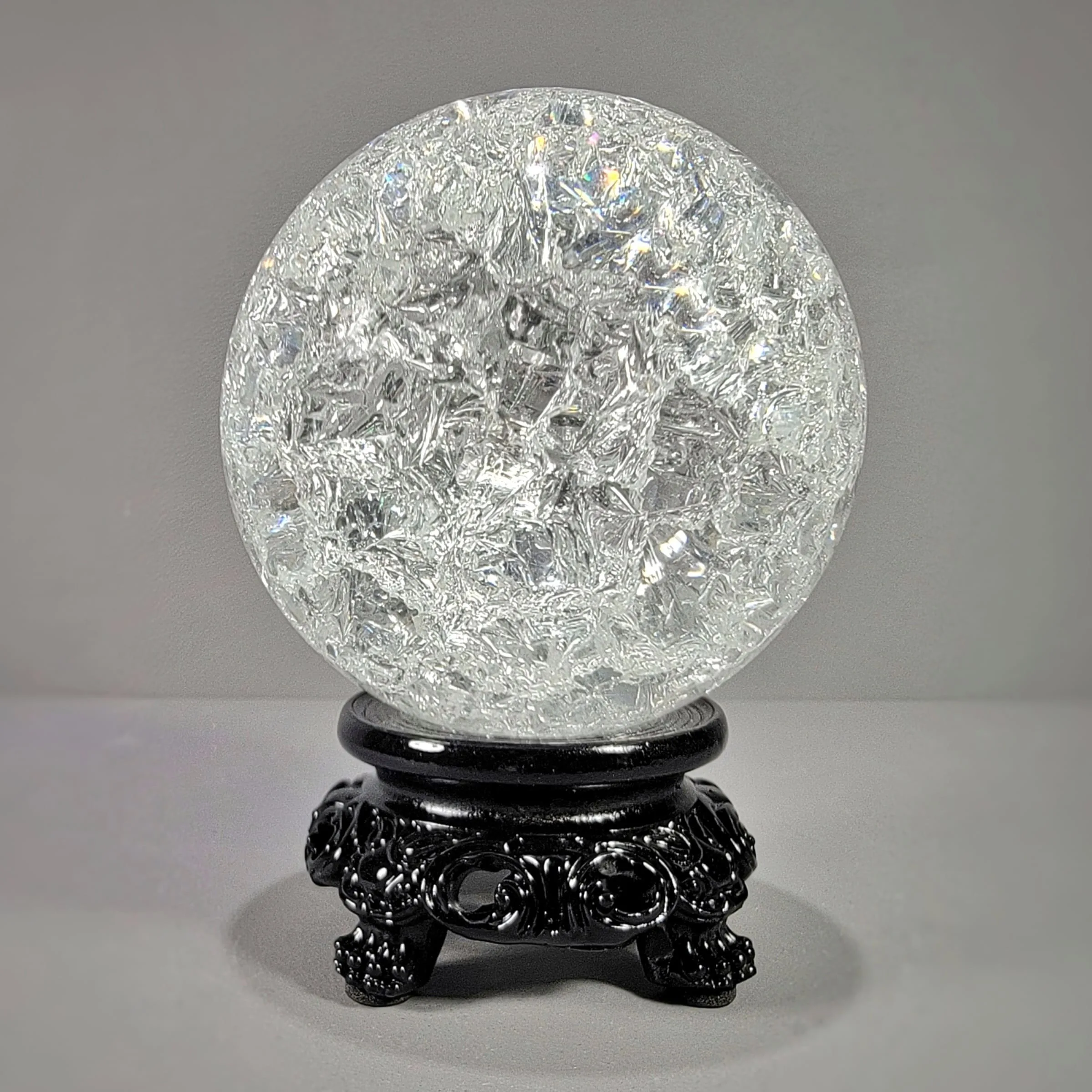 Size is 80mm ( a little over 3 inches in diameter ) and comes with your choice of a free clear lucite stand or a lovely black ornate stand as seen in photos. Composed of real quartz and glass mixture. This process is what allows it to obtain its stunning level of clarity and near flawlessness.