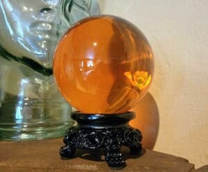 We take pride in having the highest quality, optically pure crystal and gazing balls available. This Amber Crystal Ball has been hand polished to a perfectly smooth sphere. This piece has a gorgeous deep vibrant amber color and, with the right light, shines a bright golden orange.