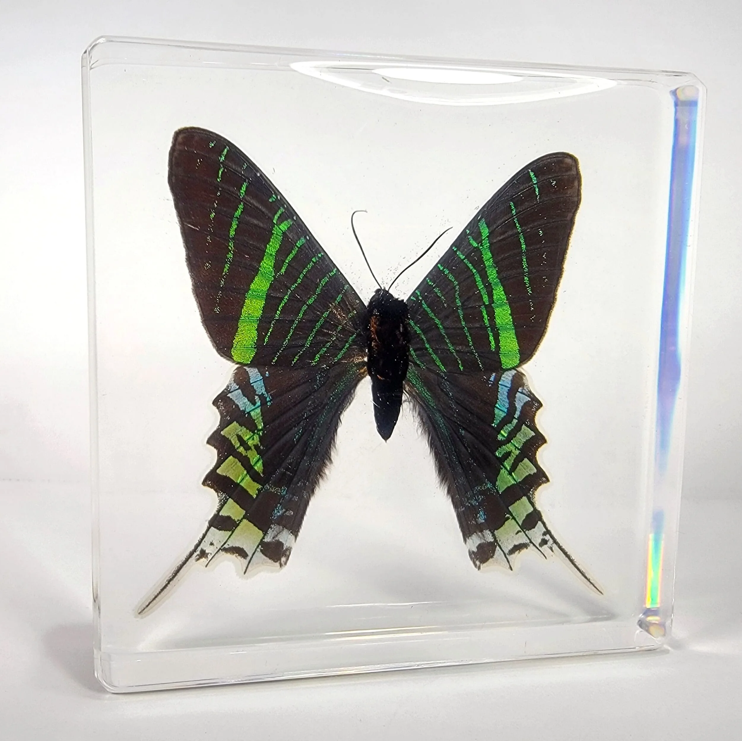 As with all bugs in resin, size shape, and positioning can vary slightly. Lucite block measures approx. 2 3/4 inches tall by 1 1/2 inches wide.