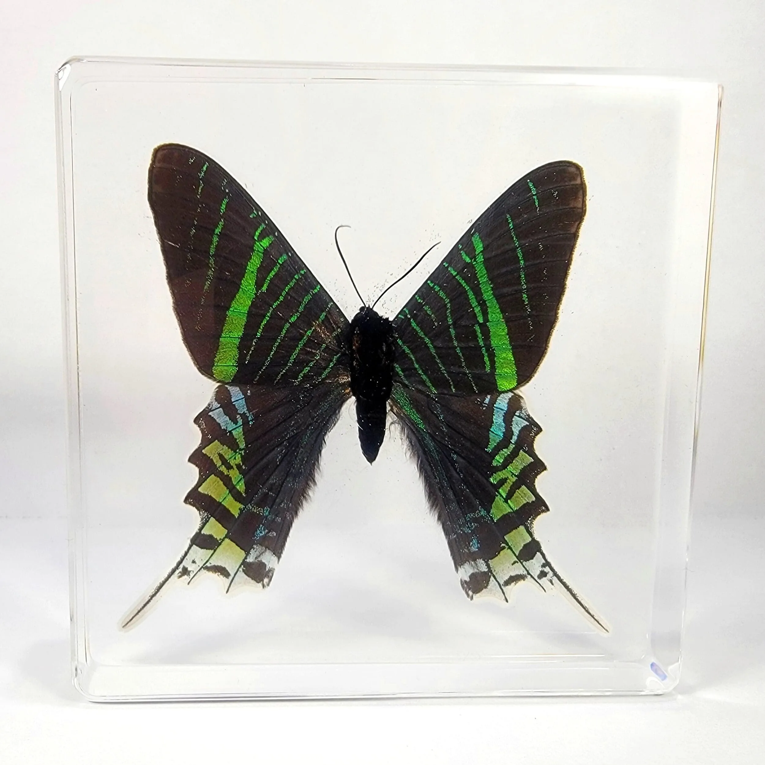 This real roach specimen is embedded in crystal clear resin, allowing you to inspect every detail of this creepy-crawly bug without it scurrying up your arm. This is a great educational tool or a nice little piece for any entomology collection.