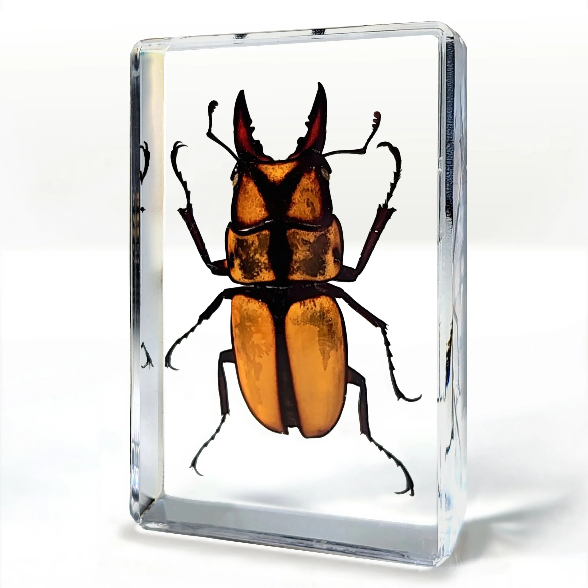 As will all bugs in resin, size shape and coloration can vary. Measures approx. 1 1/2 inches square by 1/2 inch thick.
