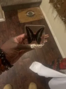 I really needed it before I moved at the end of the week, and I was a little nervous about purchasing it. Its very well done, super clear resin, and butterfly is super intact. Thank you!!