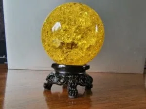 80mm, Citrine Crystal Ball, Yellow Crackle Glass Ball, 3.15 Inch