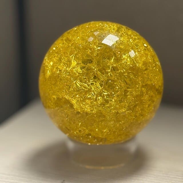 80mm, Citrine Crystal Ball, Yellow Crackle Glass Ball, 3.15 Inch