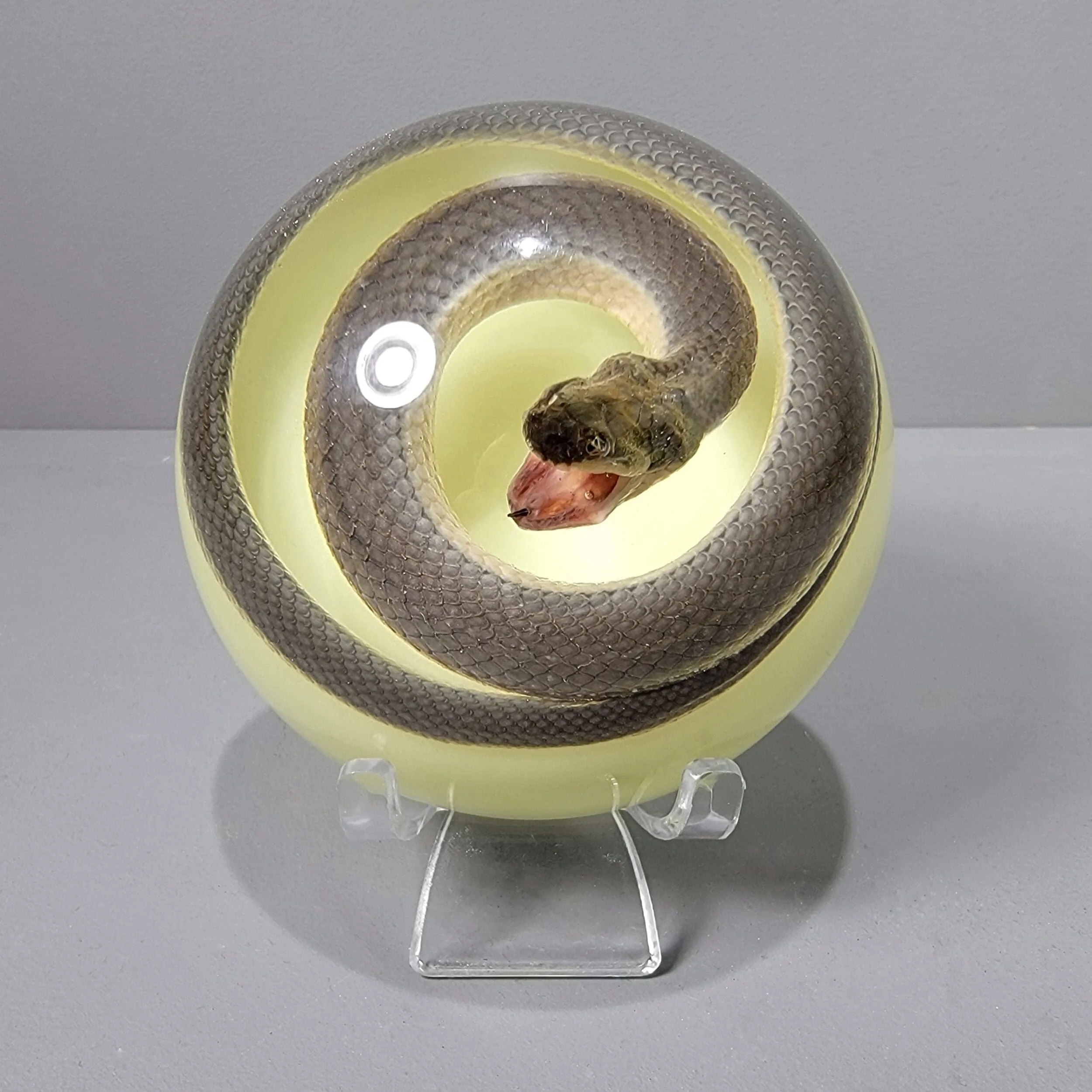 With natural markings that look like a face is the Man Face Bug in crystal clear resin. He is the perfect little oddity to add a touch of the unusual to any collection.